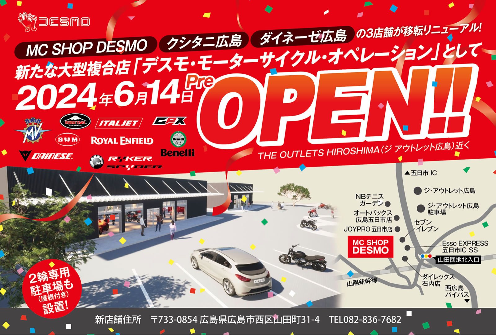 これまで関わって来れた2輪業界とこれからバイクを始めるライダーに貢献できればと思い、今までに無い様なスケール感で新店舗「デスモ・モーターサイクルオペレーション」を6月オープンいたします!プレオープンは6月14日!グランドオープンは7月を予定しています。